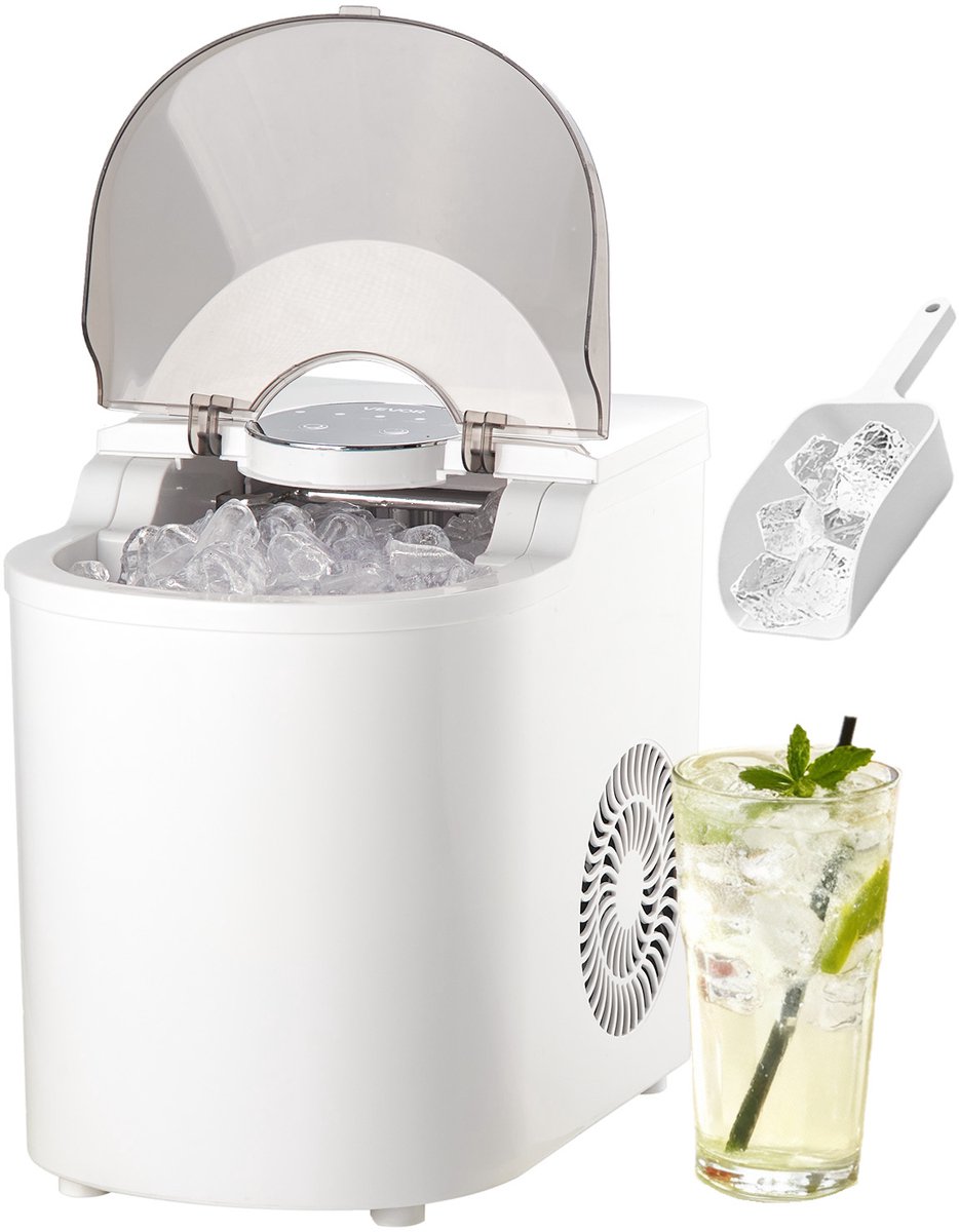 VEVOR Tafelmodel Ijsblokjesmachine, 7 Ijsblokjes in 6 Minuten, 11,8 KG Per Dag, Zelfreinigende Machine met Ijsschep, Ijsblokjesmachine met 2 Formaten Ijs voor Thuis, Keuken, Kantoor, Bar, Feest (0197988177456)